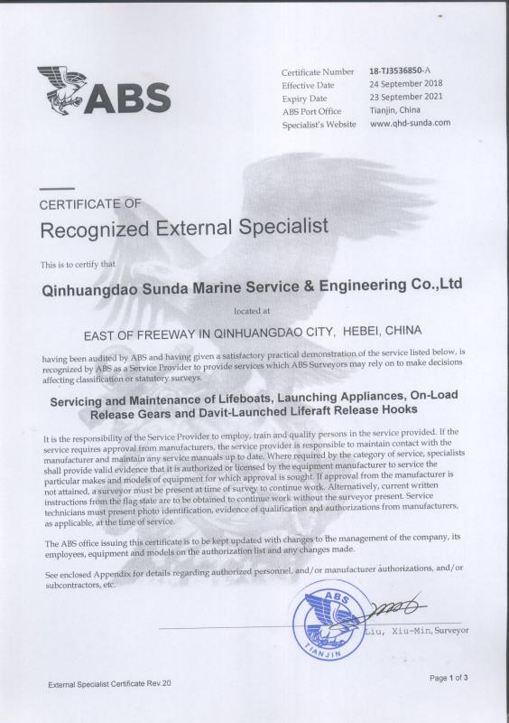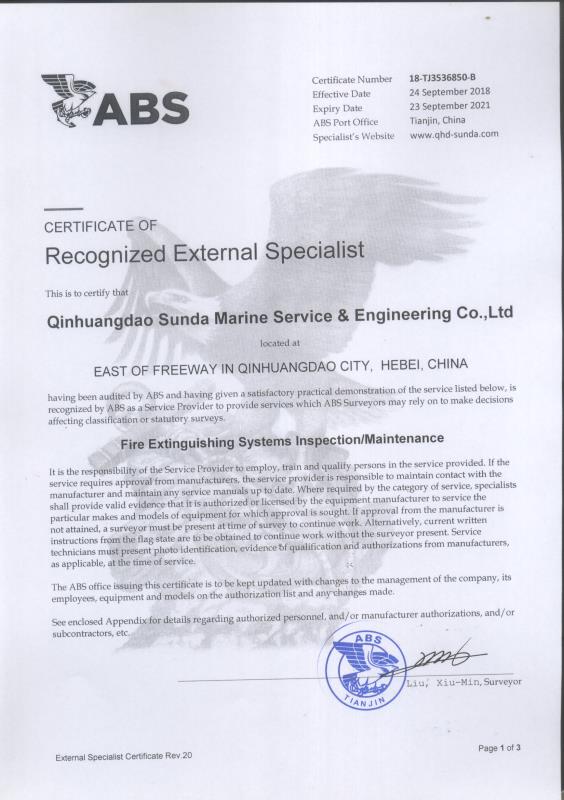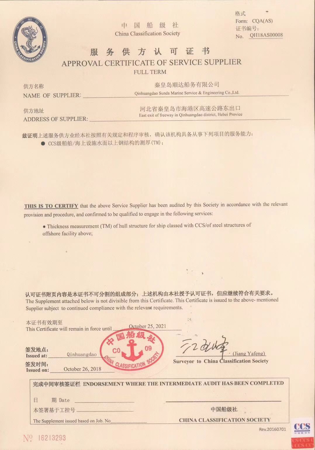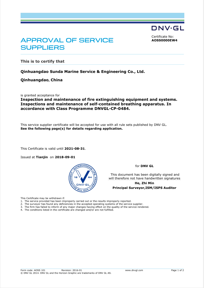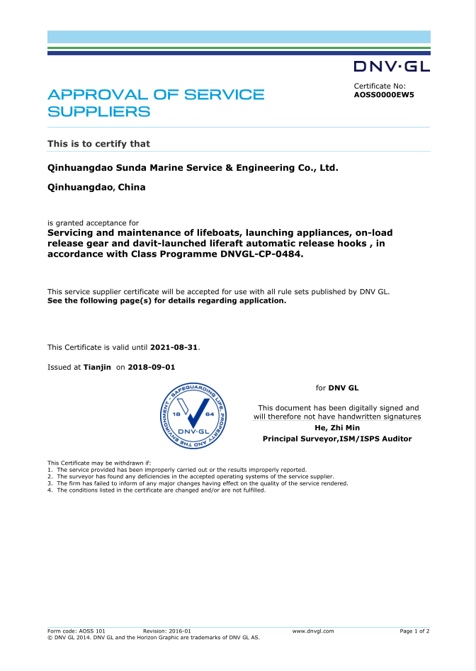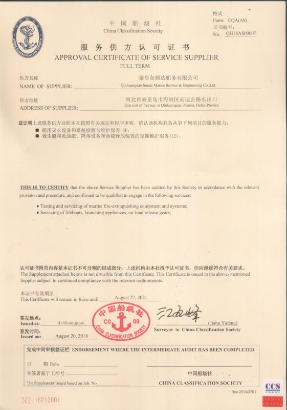 秦皇島順達船務有限公司位于美麗的海濱城市、中國北方著名的能源輸出大港--秦皇島。公司從事于船舶修理、物料供應、水下檢測、船體測厚、消防救生設備及救生艇檢驗、電氣自動化修理等服務。 公司自1997年成立至今,先后為國內外船東修理、檢驗各類船舶萬余艘,積累了豐富的施工經驗。公司現(xiàn)有場地100余畝,員工30余人,以及工程用車若干臺。我們公司一直本著嚴以律己、真誠待人、精益求精、信譽至上的經營理念,以優(yōu)質的服務、專業(yè)的施工、合理的收費,得到了國內外船東的廣泛認可,贏得了良好的口碑和信譽。 公司已取得了中國船級社(CCS)、美國船級社(ABS)、日本船級社(NK)、德國船級社(DNV GL)等各個船級社的消防救生和救生艇檢驗資質, ...